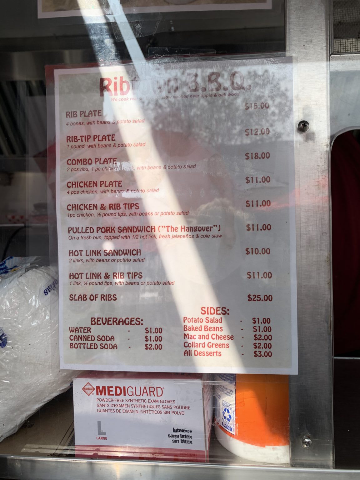 A few months ago, my friend and neighbor tipped me off to Ribtown BBQ, which is based in the parking lot of Jefferson Park’s Westside Loan Office/Pawn Shop. After driving by today, I finally turned around and stopped in for a bite, lured by the smell of the smoker.